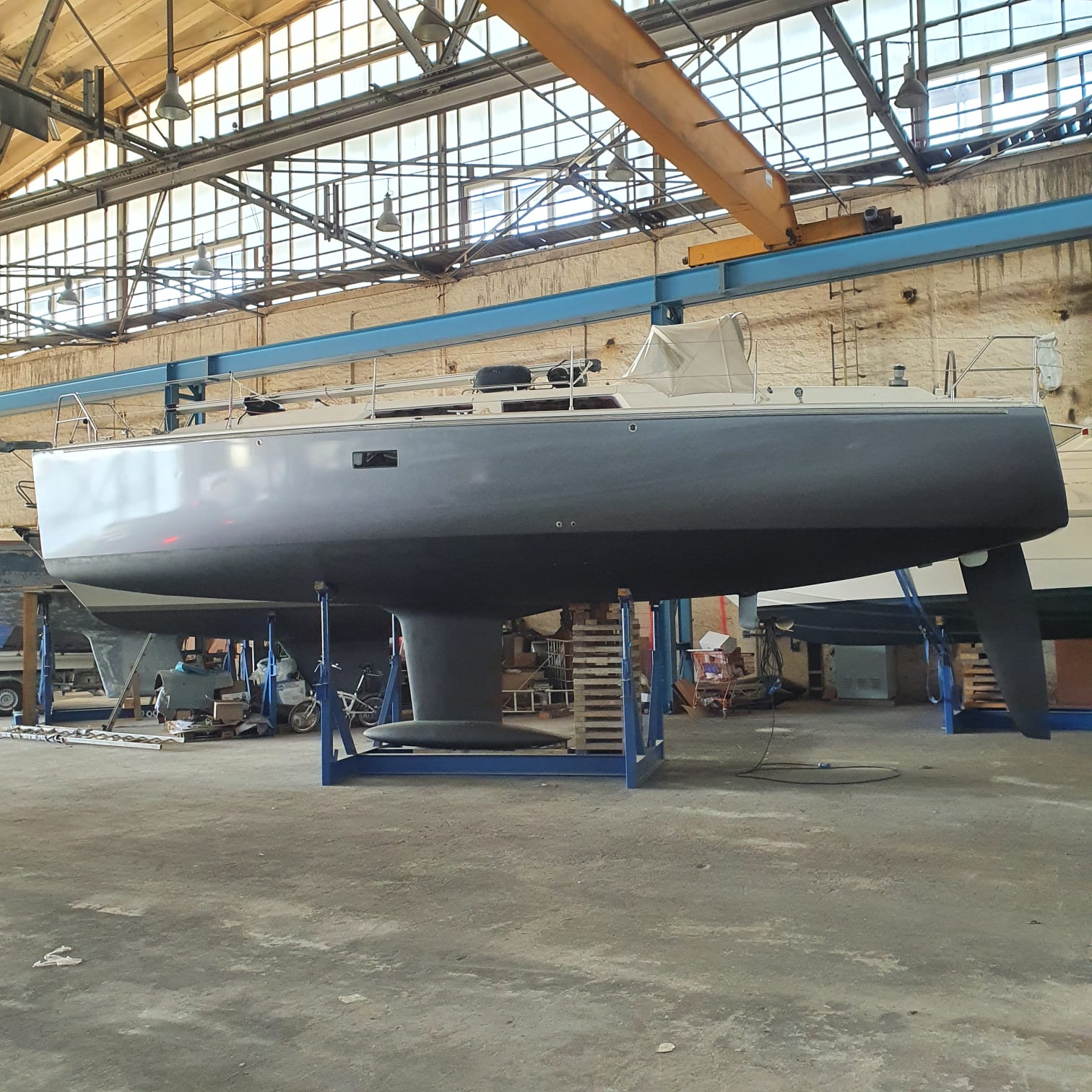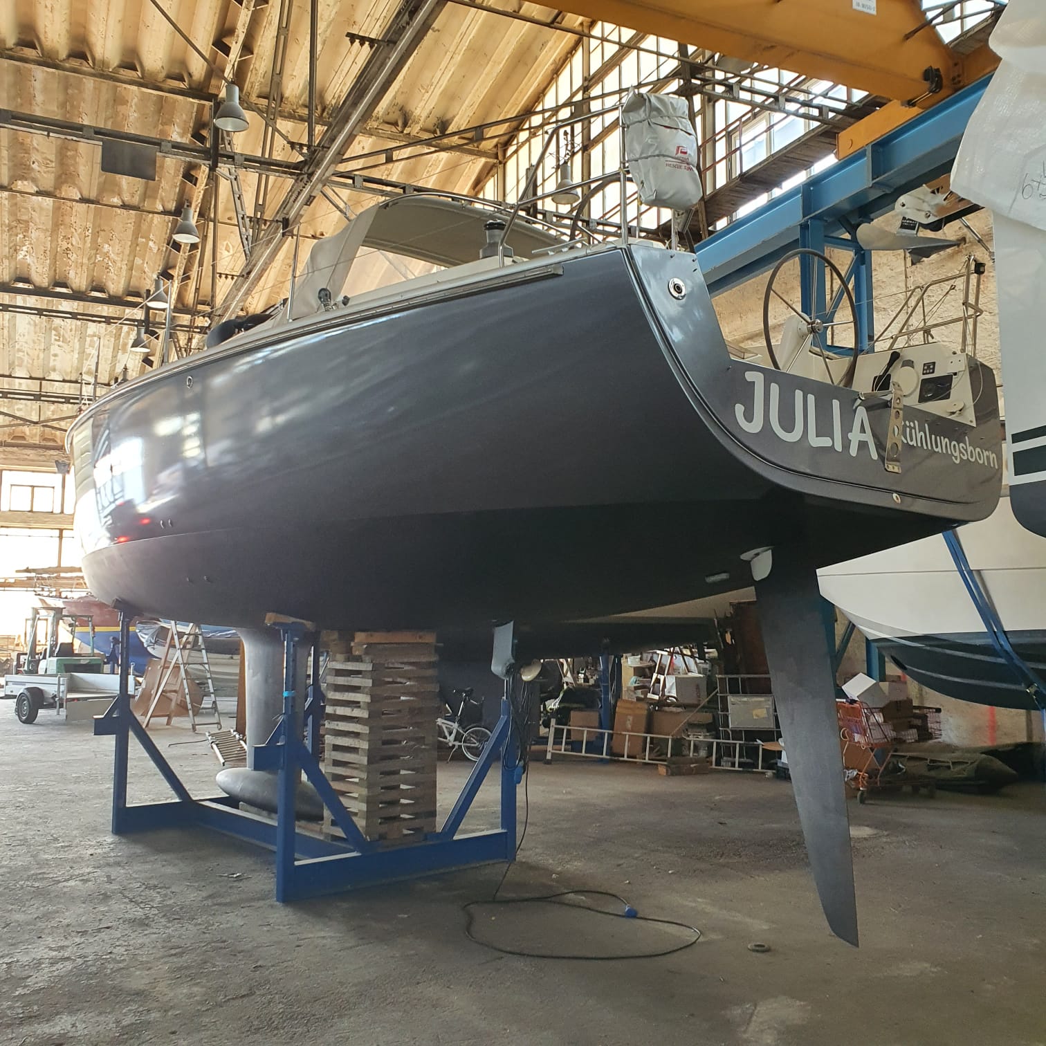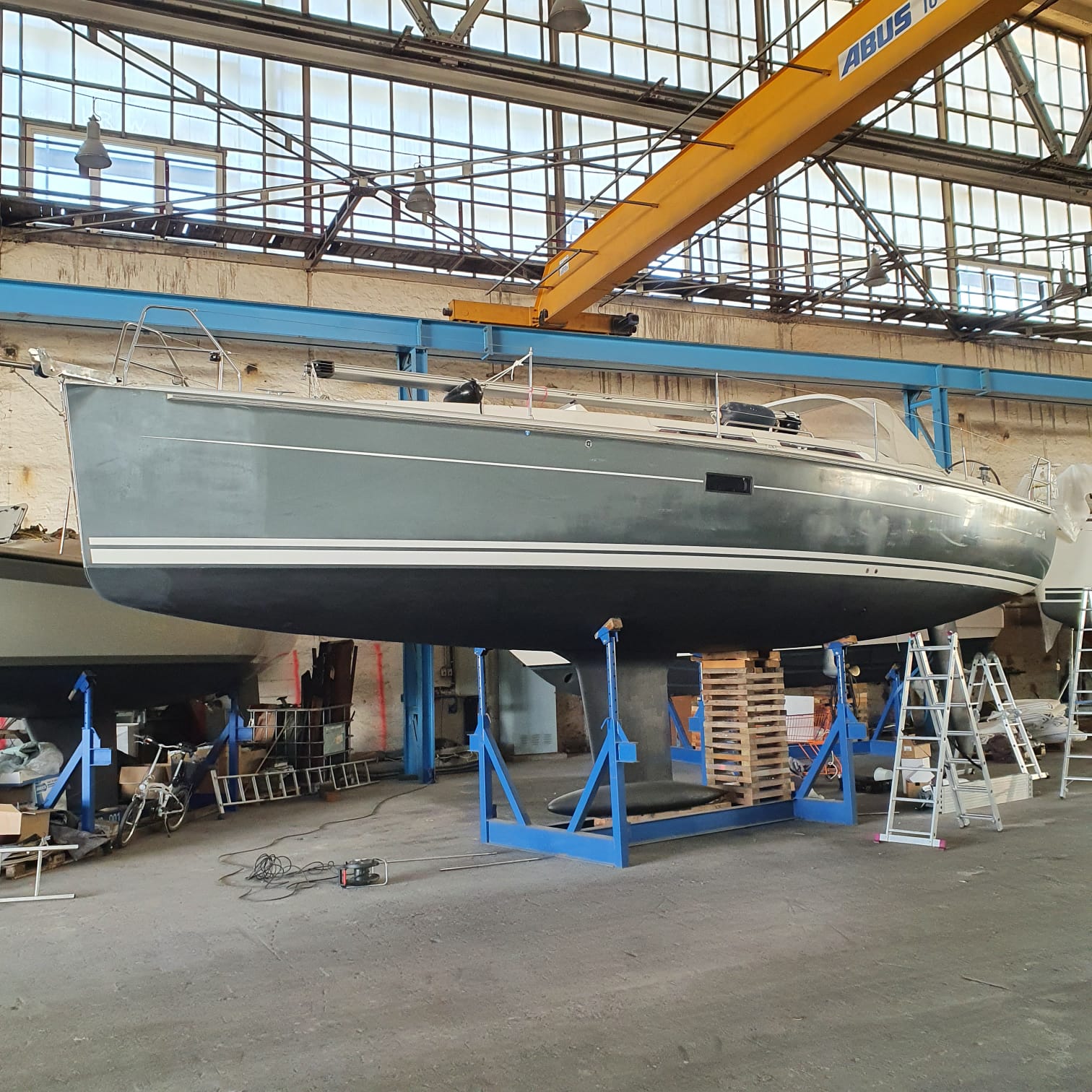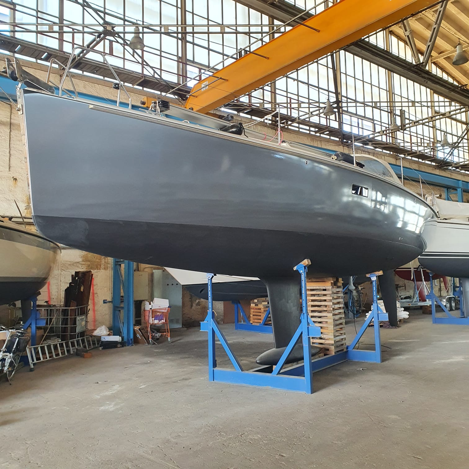 Gelcoat war stark verblichen. Da ist eine Rumpffolierung genau das Richtige!