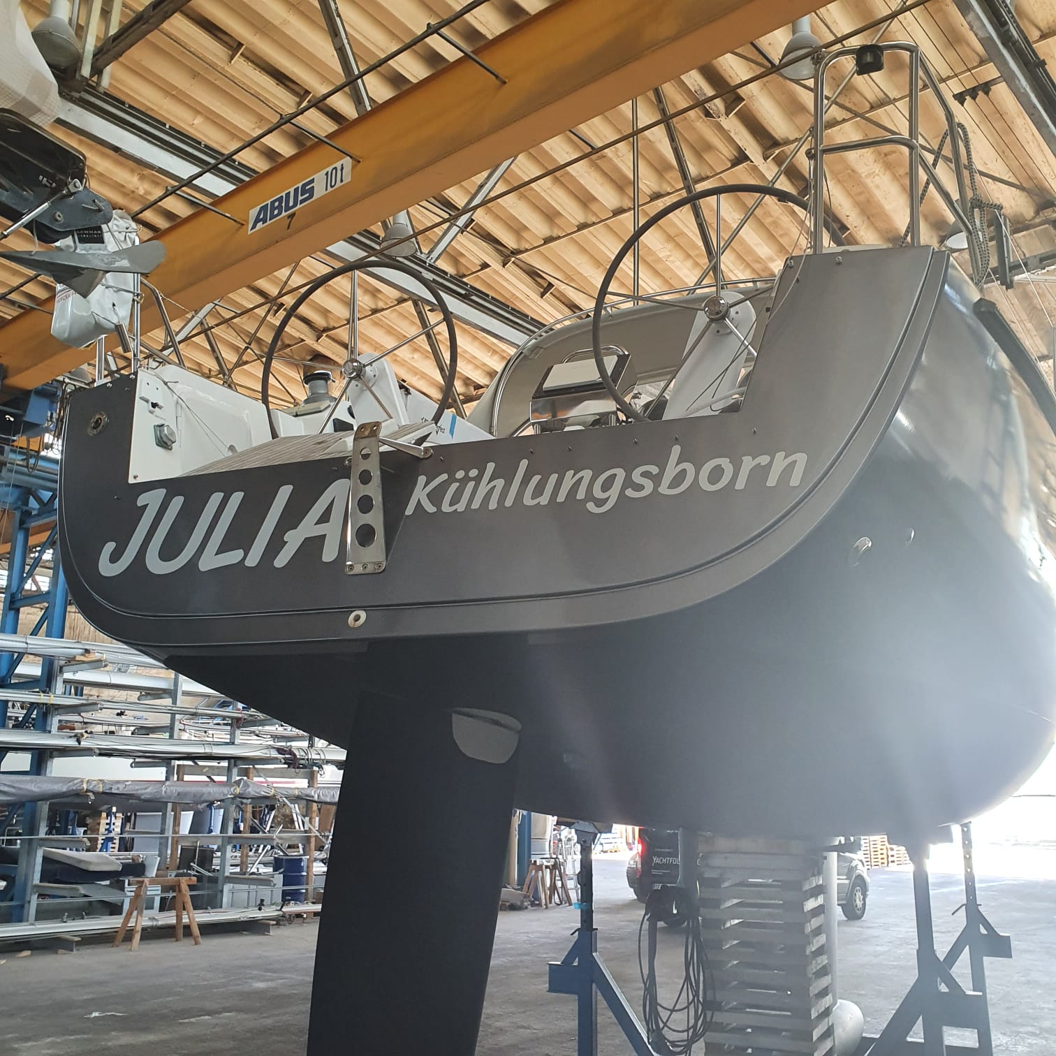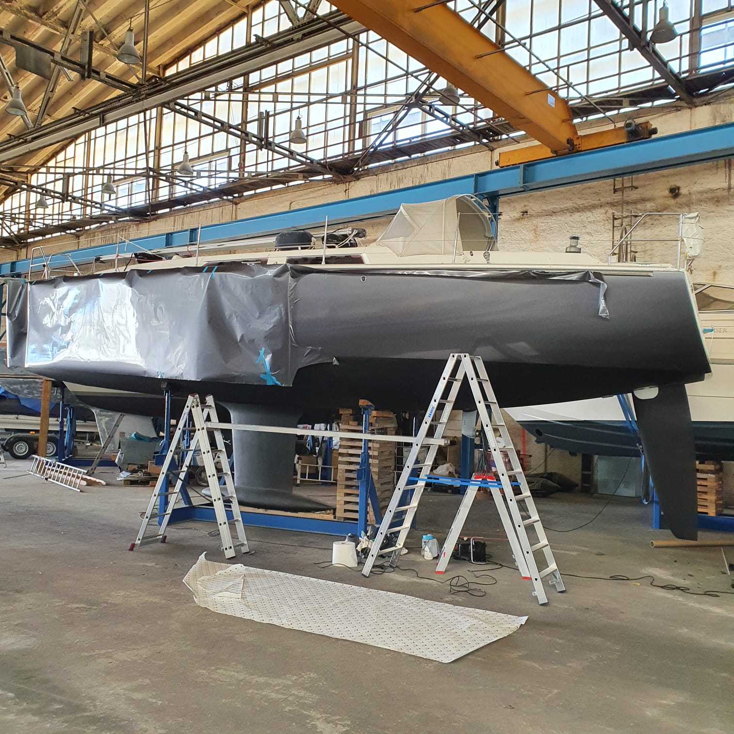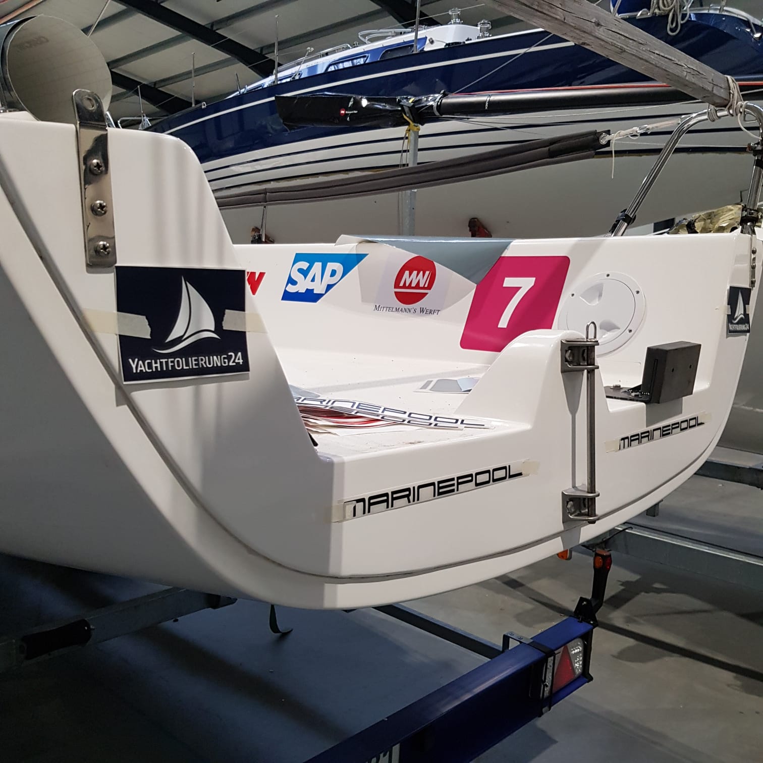 6 x Fenderschutz, hochtransparente und strapazierfähige Folie auf die Flächen verklebt, wo sich die Fender befinden. Die Folienkanten zum Antifouling wurden mit spezieller Kantenversiegelung von 3M versiegelt. Wir als 3M Select Partner können Ihnen verlängerte Garantien auf das Material und die Verarbeitung geben!