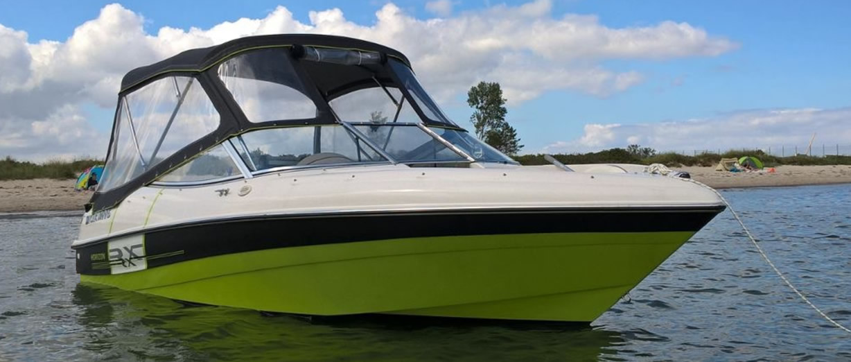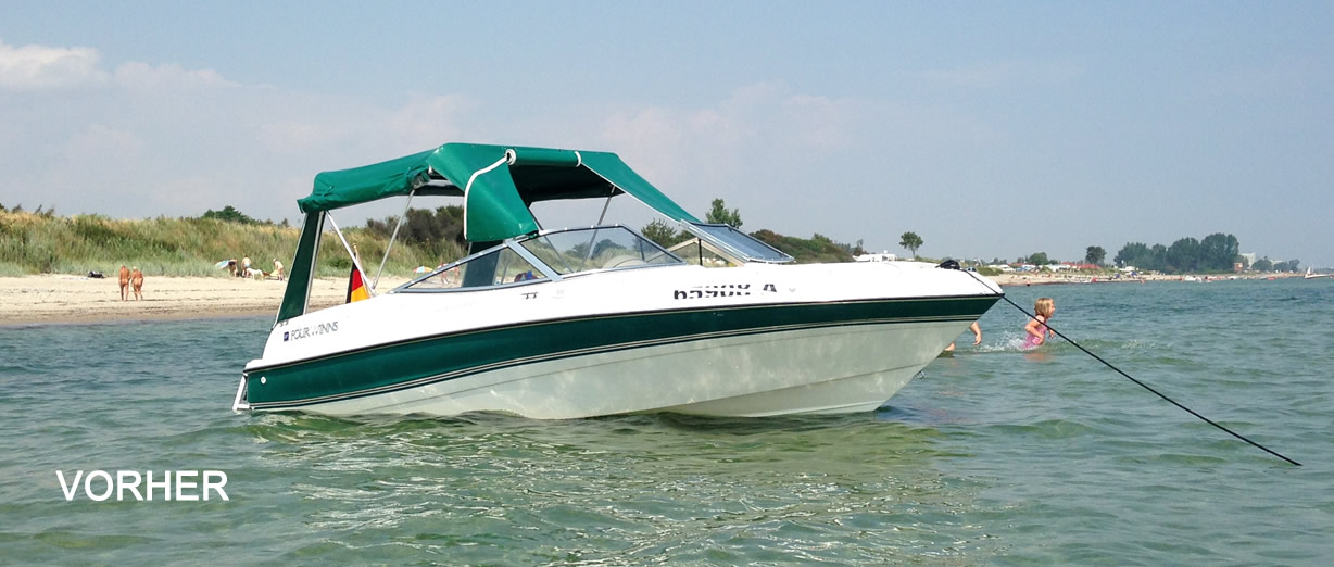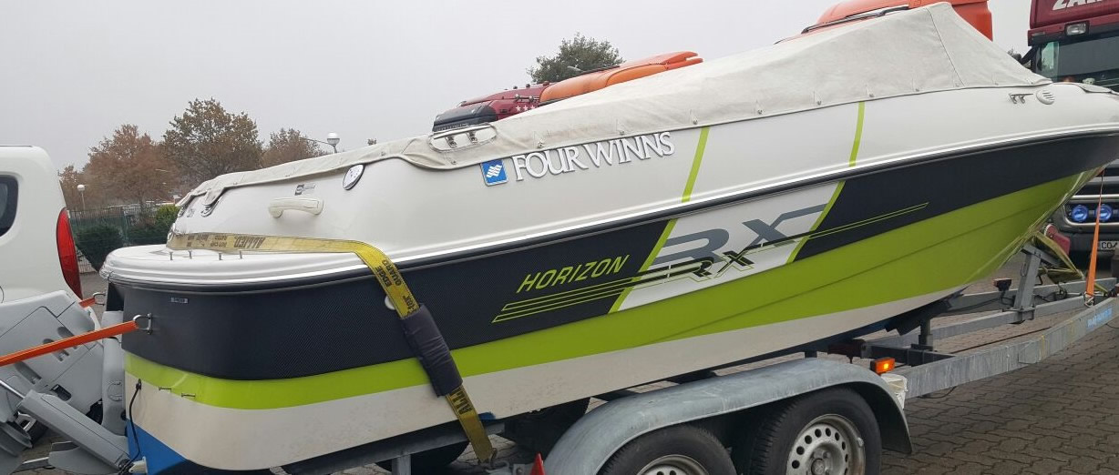 Das Boot Four Winns Horizon RX erstrahlt in seinem neuen Design. Der Kunde entschied sich für eine Vollverklebung in carbon schwarz und lindgrün. Boote neu lackieren zu lassen ist wie bei Fahrzeugen mit hohen Kosten verbunden. Hiermit ist die Folierung die günstigere Alternative. Es bietet dem Boot einen Schutz gegen aggressives Salzwasser und dient als UV-Schutz gegen die Sonne. Unsere Folien haben eine Salzwasser – Zertifizierung!Beschriftungen mit Texten, Motiven, Nummern, etc. sind ebenfalls möglich.