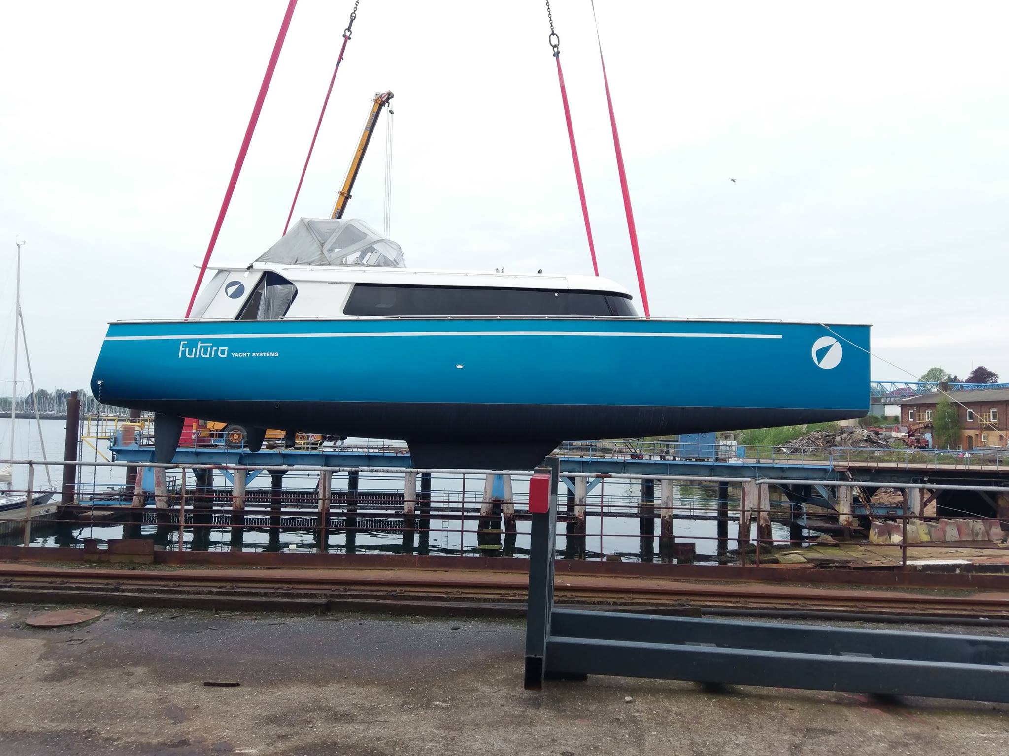 Hier haben wir ein altes, 6 Meter Konsolenboot in Indigoblau foliert. Den Wasserpass haben wir zusätzlich mit einem Speziallack versiegelt.Außerdem haben wir auf dem Motor einen passenden Schriftzug verklebt.